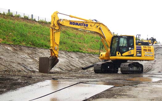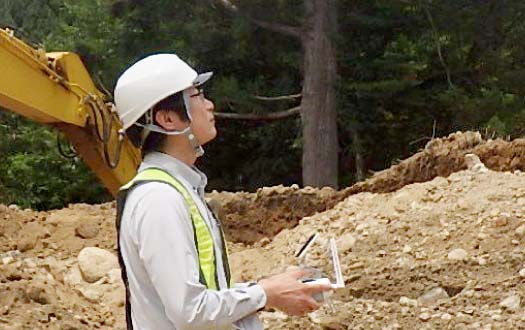 精密な測量で最適化された現場マップと工事計画を元に、ICT建設機械による安全で効率的な工事を行います。従来より少ない人数での工事が可能です。